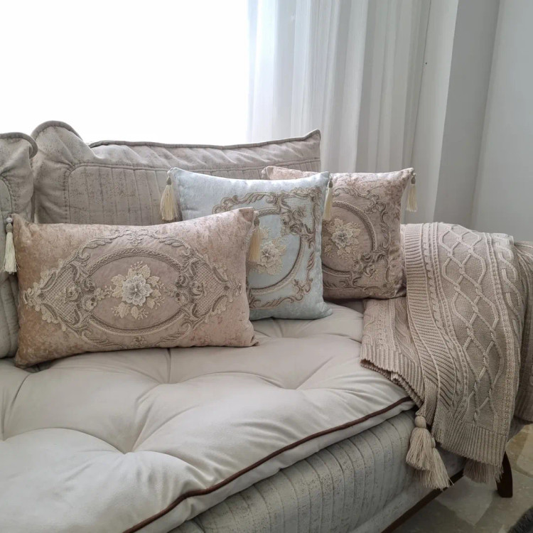 کوسن های طرح دانتل زیبامون تو دو رنگ آبی روشن و کرم نسکافه ای روشن البته رنگبندی کامل طرح دانتل رو میتونین تو قسمت دسته بندی ، تو قسمت طرح دانتل ببینید جنس : مخمل پتینه ابروبادی درجه یک رنگبندی ۱۰ الی ۱۲ رنگ زیبا دوخت کامل بی نقض دانتل ترک گل برجسته کوسن ها بصورت کاور و هم پرشده با بالشتک الیاف داخلش میتونین سفارش بدین کاور کوسن ها زیپ دار ست کامل کوسن(مربعی_مستطیلی_پایپون_گرد و استوانه ای ) موجود و قابل اجراست تو سایز و ابعاد دلخواه قابل اجراست سایز کوسن مربع ها ۴۰در۴۰ و سایز کوسن مستطیل ۵۰ در۳۰ اگه تو خریدت نیاز به مشاوره داشتی واتساپ و دایرکت در خدمتیم