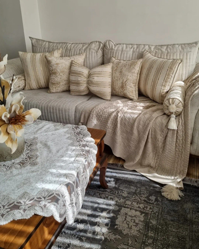 طرح ایپک پرفروش ترین رنگ طرح ایپک مخمل پتینه وارداتی درجه یک رنگ شیری طلایی دو عدد کوسن مربع ۴۵در۴۵ دو عدد کوسن مربع ۴۰در۴۰ دو عدد کوسن استوانه ای و یک عدد کوسن پاپیون