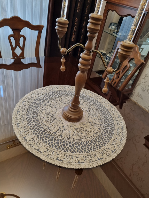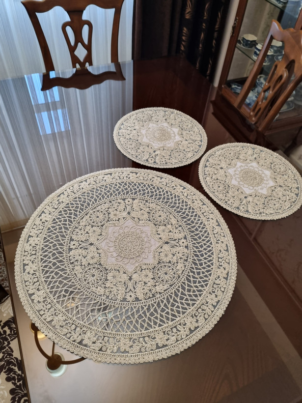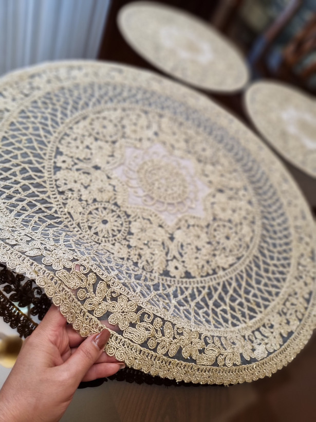 ست سه تیکه رومیزی گرد قیطون دوزی شاین دار
