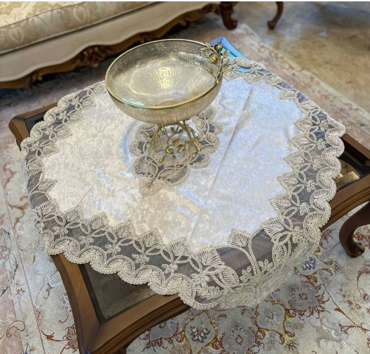 دیدن محصولات مرتبطرومیزی مربع ۹۰در۹۰ ترکیب مخمل و تور قیطون دوزی شاین دار
